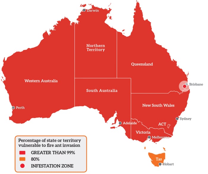 Fire Ants Australia Map – Although their stings are rare in Australia, they can lead to a serious allergic reaction. Here’s what to do if you’ve been stung. Red imported fire ants (Solenopsis invicta) are native to South A . It’s not a long-term relationship. The male reproductive ants promptly die after their flight of glory, having checked all the boxes on their evolutionary to-do list. The queen will land, likely in a .