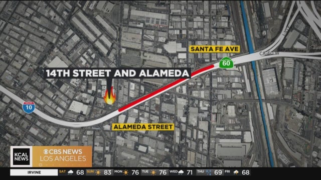 Massive downtown LA pallet fire shuts down 10 Freeway interchange