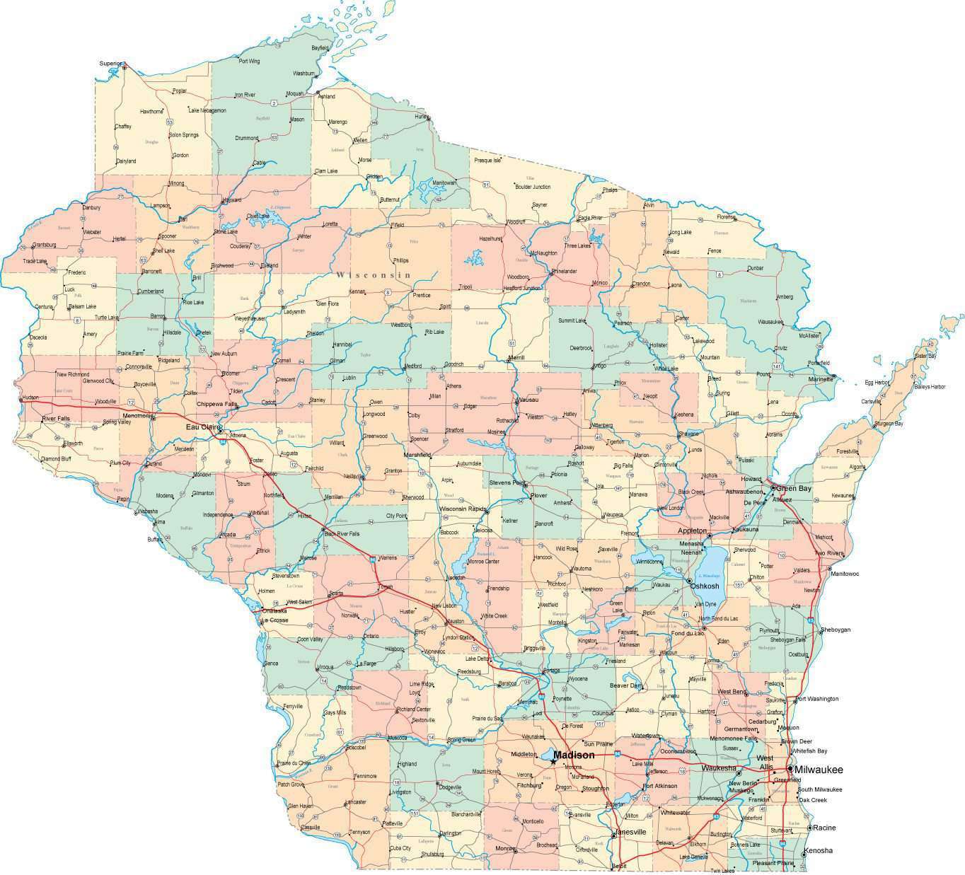 State Map Of Wisconsin Usa – The Wisconsin Supreme Court hired Bernard Grofman and Jonathan Cervas to evaluate map proposals. They may suggest edits or propose their own. . Republican Sen. Ron Johnson won reelection in 2022 in Wisconsin by just over 25,000 votes โ the latest slim-majority victory in the state, which gave its 10 Electoral College votes to former President .